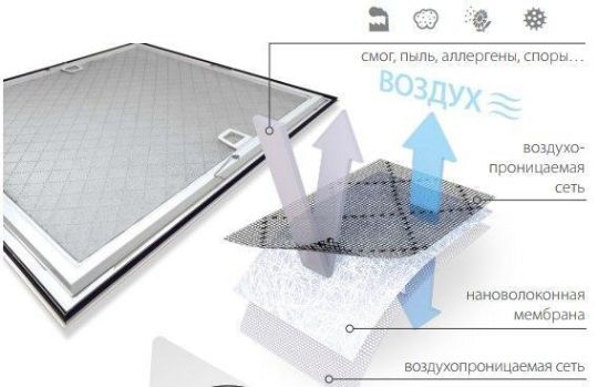 Фильтрующий нетканный материал изготовлен с использованием нано технологий. Моется водой.